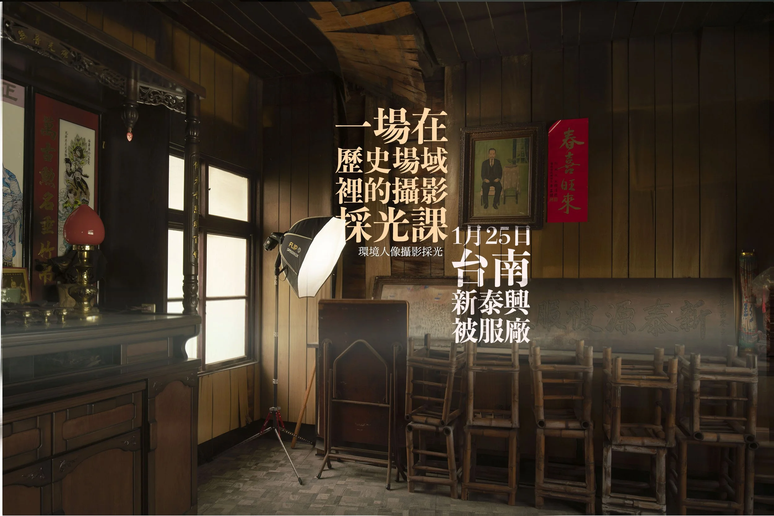 工作坊 由兩屆金鼎獎 最佳雜誌攝影 攝影大叔 /劉子正 所主持教授。這是一個結合後製和採光的兩日平面攝影工作坊。
